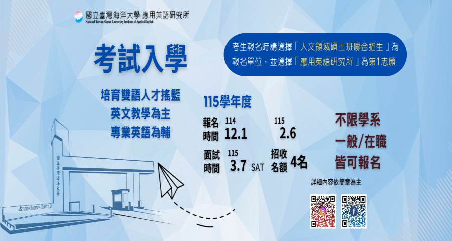 招生系所、考試日期、科目及招生名額請參閱簡章。